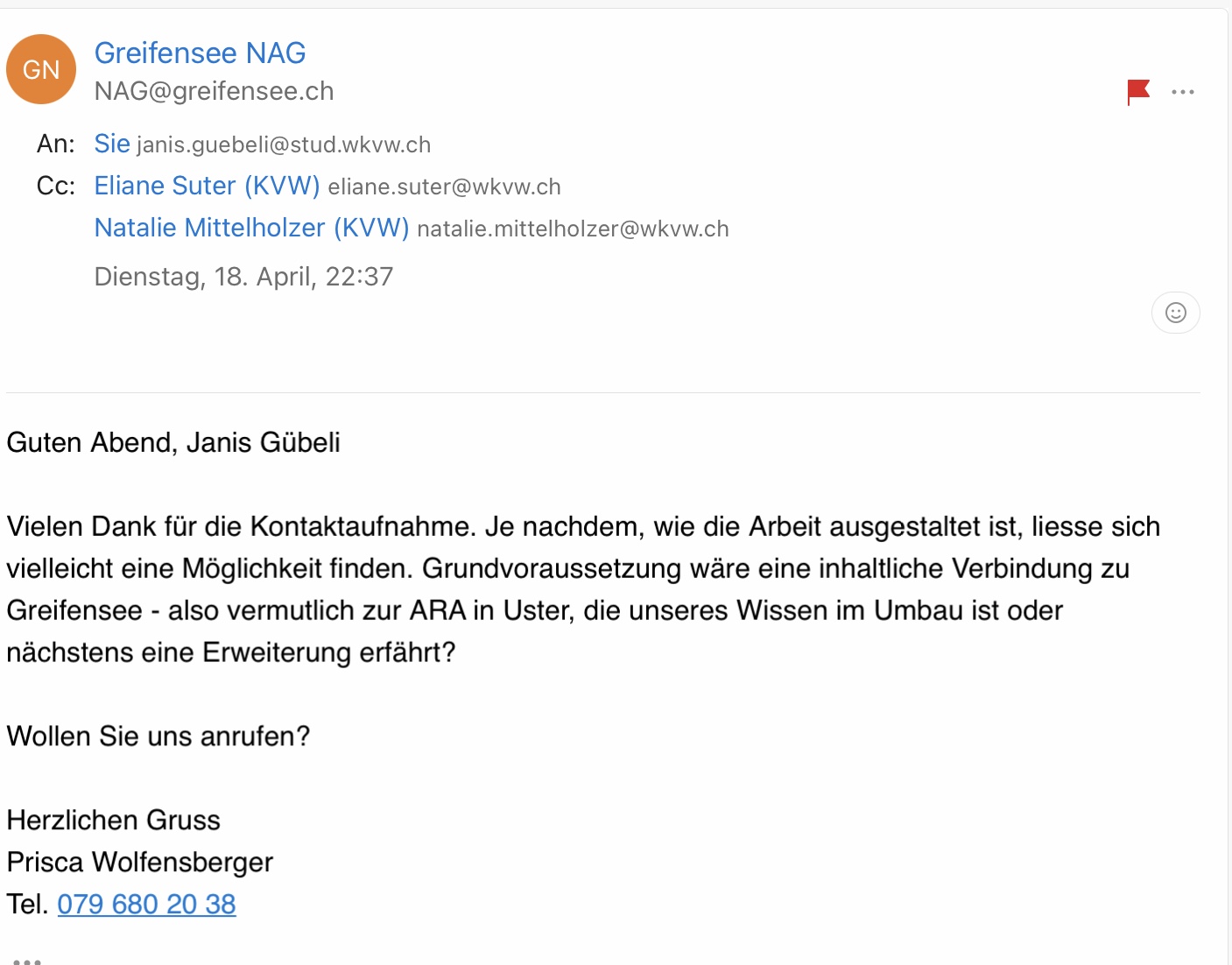 IDAF - Verlauf der E-Mails mit Nachrichten aus Greifensee (NaG) 21. April 2023 Janis-Guebeli _VZ22 Zurich Wetzikon, Waste water, IDAF 2023 (0)