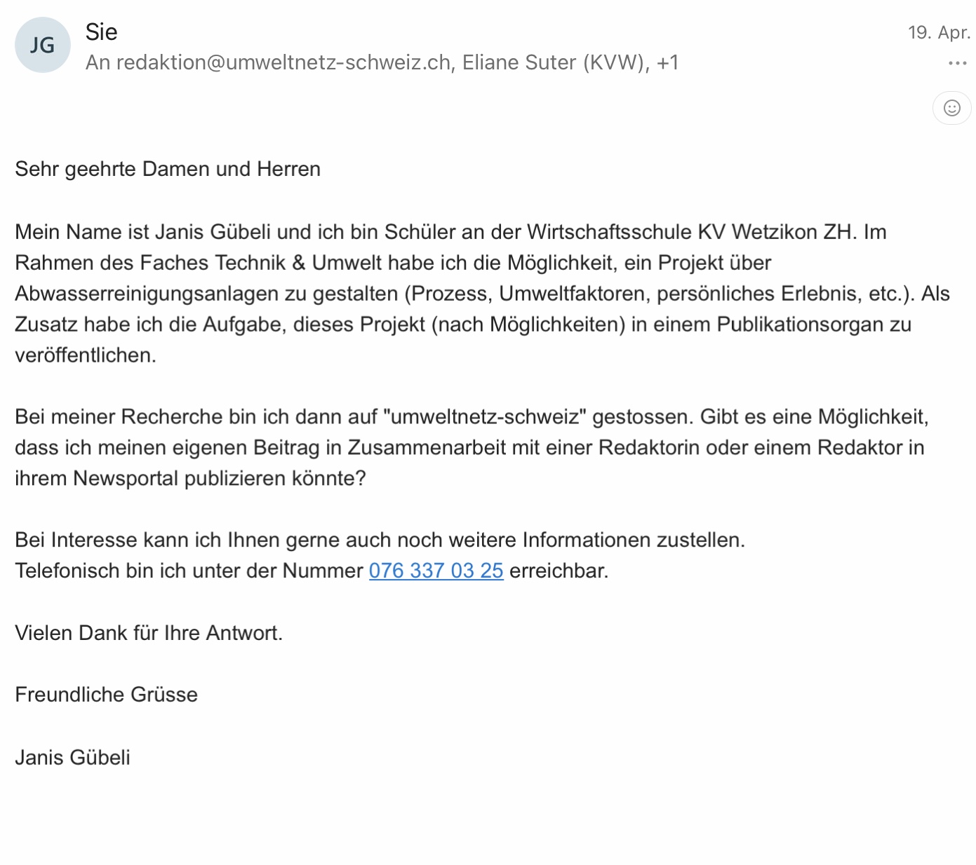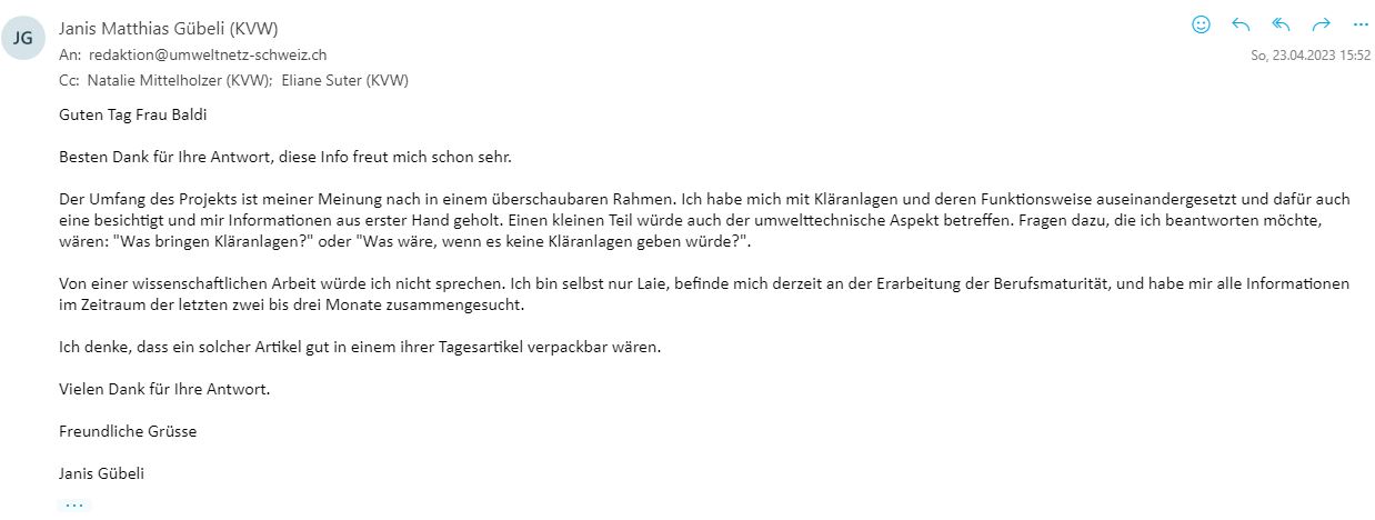 IDAF - Verlauf der E-Mails mit „umweltnetz-schweiz“ 21. April 2023 Janis-Guebeli _VZ22 Zurich Wetzikon, Waste water, IDAF 2023 (0)